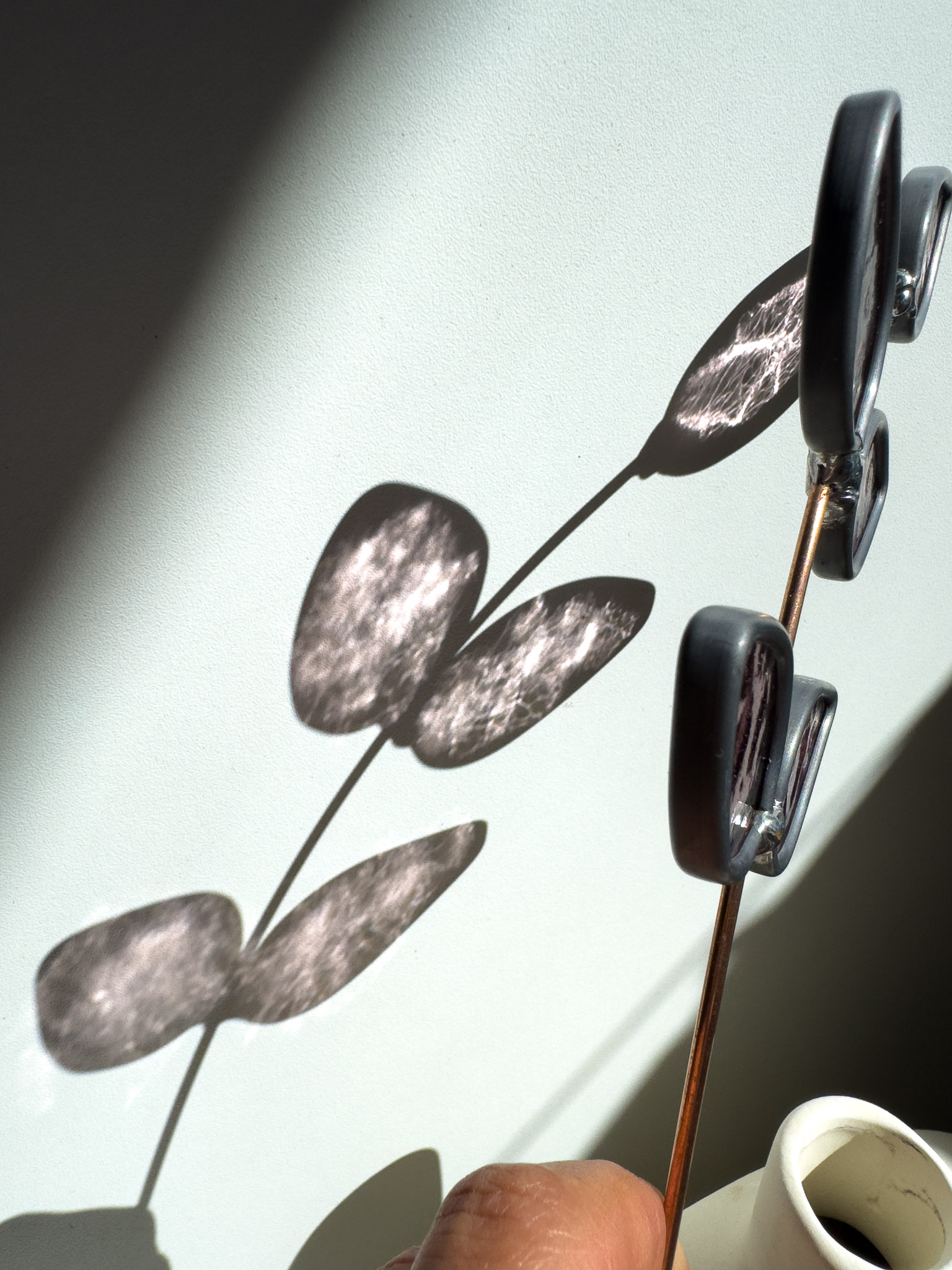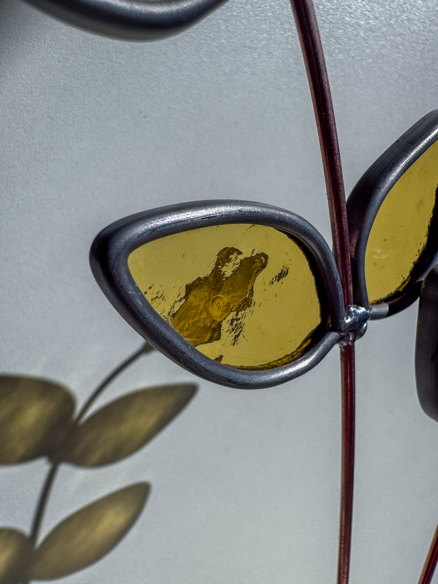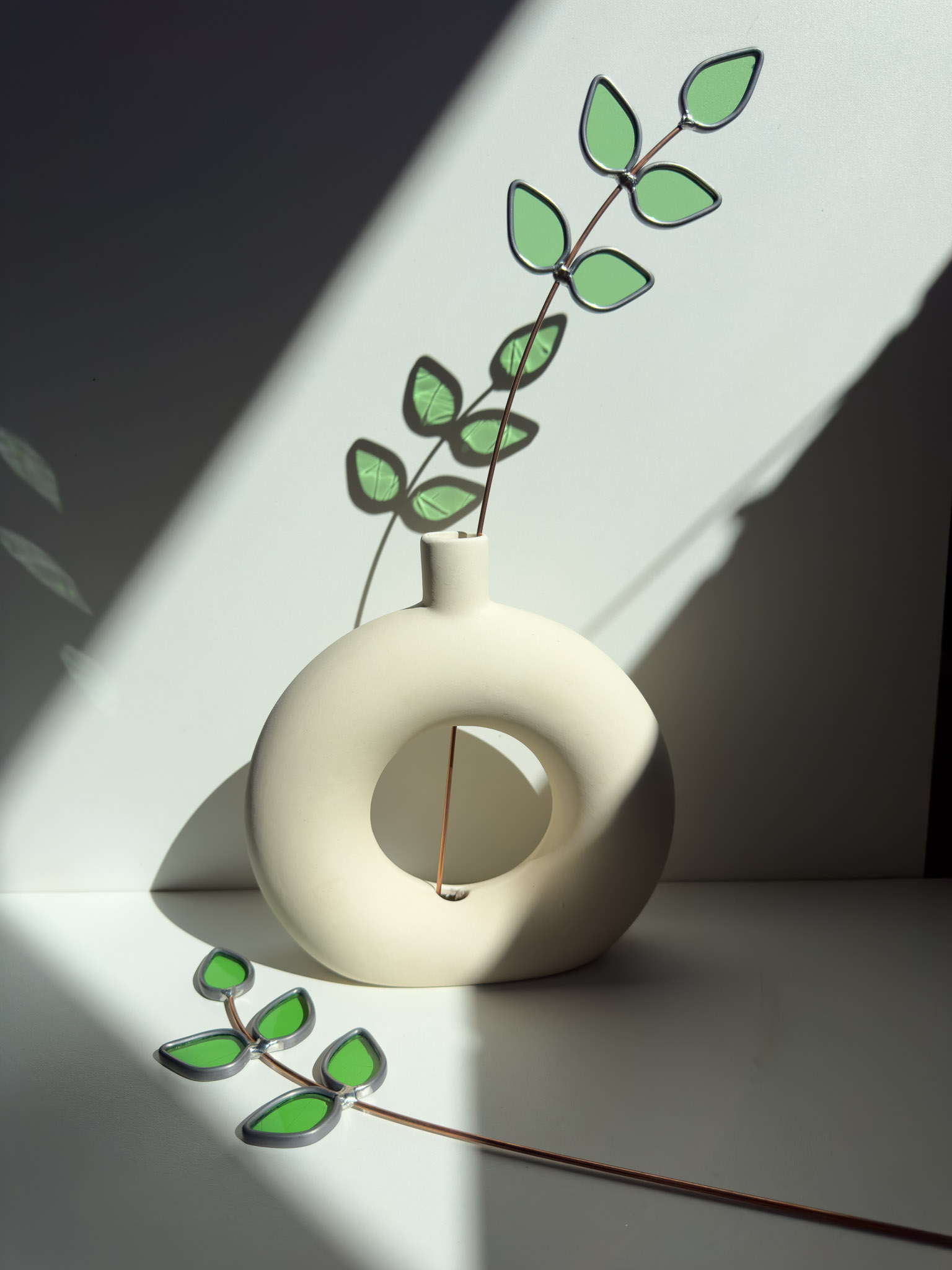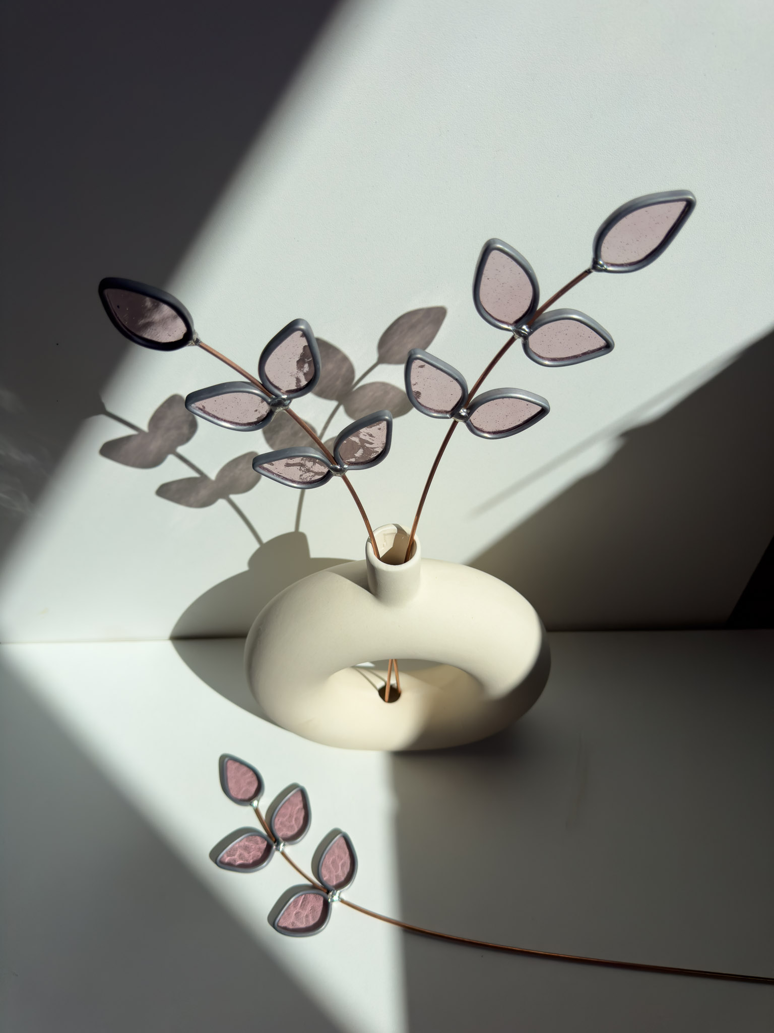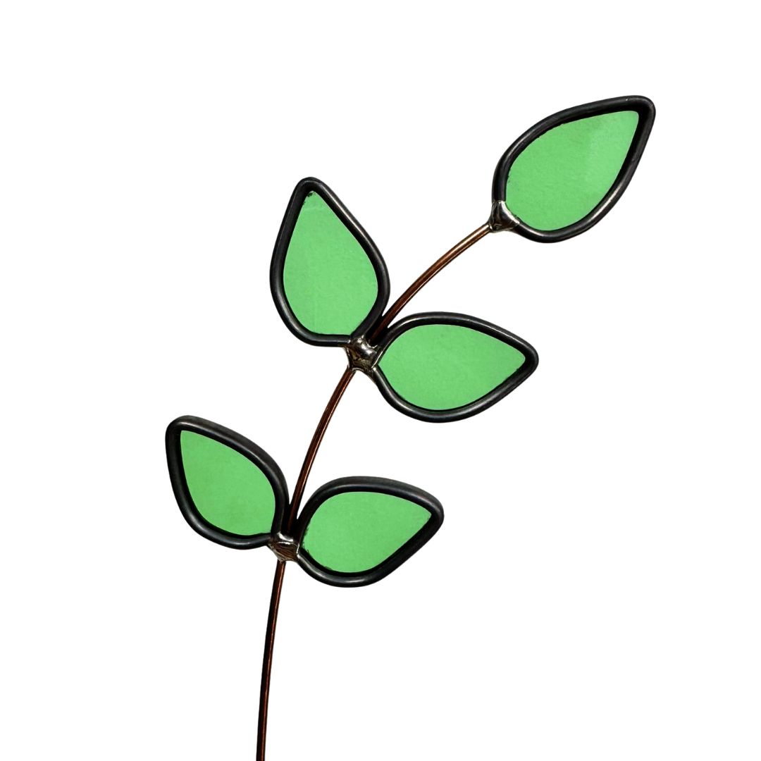 Het glas is met de hand gesneden en gesoldeerd op een stevige metalen steel. Je kunt de tak in model buigen en inkorten met een sterke kniptang.