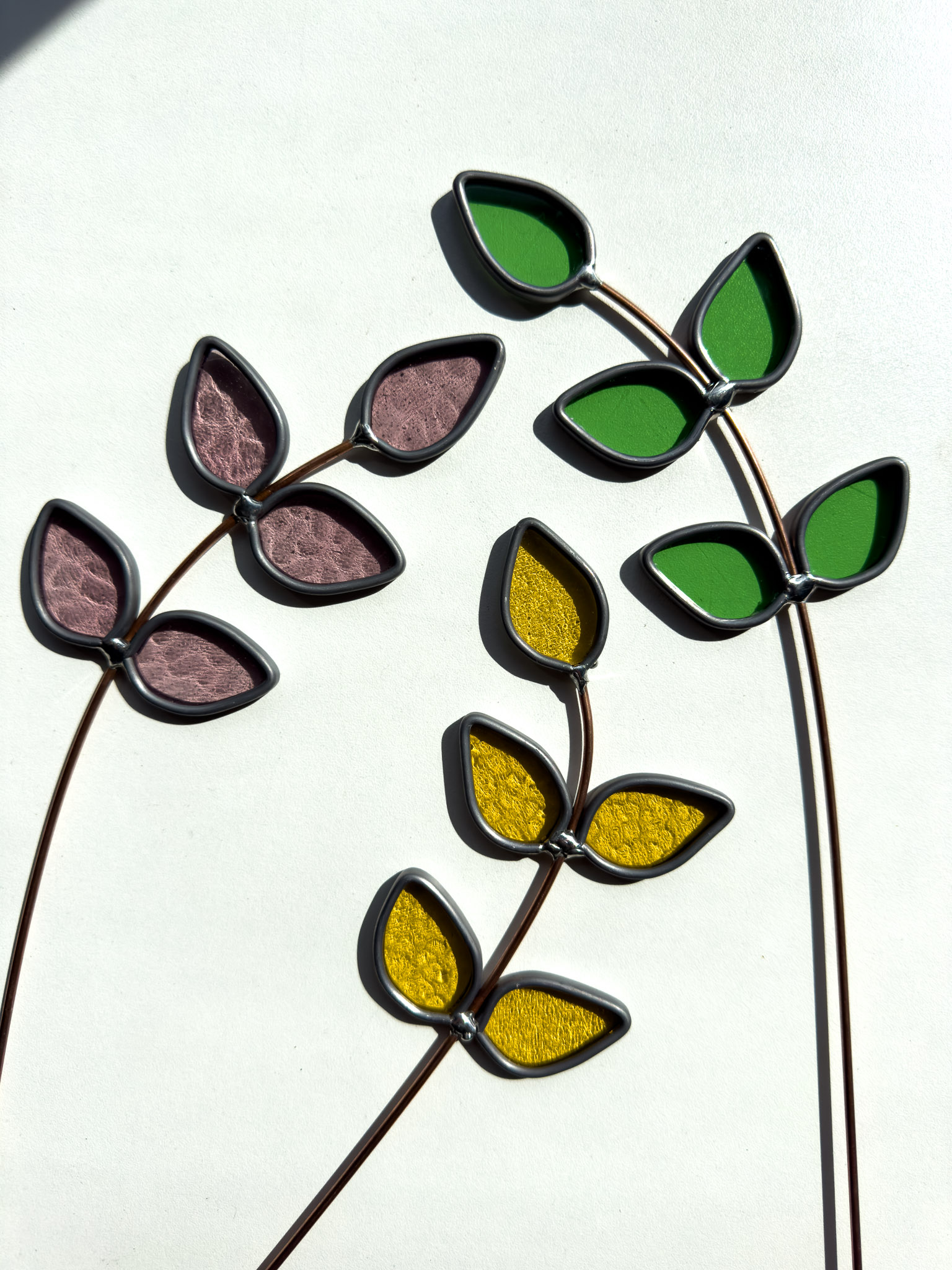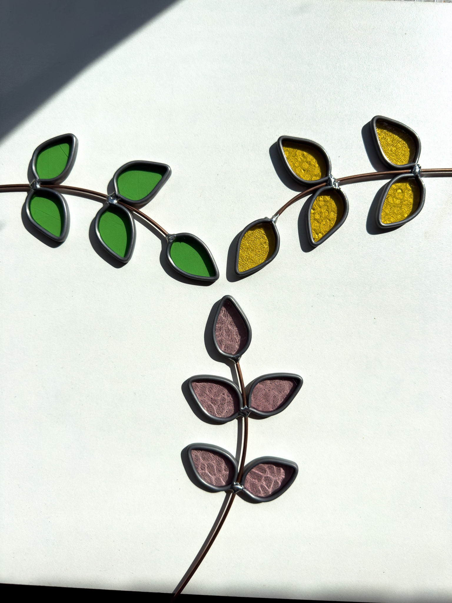 Een tak met meerdere blaadjes is geweldig in je vaas want ze geven direct volume. Daarom maakte ik deze 3 variaties is zacht geel, zacht groen,en zacht roze.