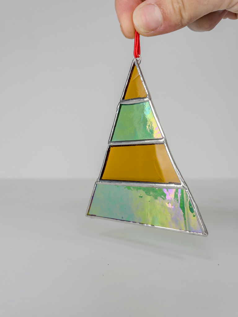 Iets origineels in je kerstboom dit jaar? Wat dacht je van deze bijzondere kerstboom van glas. Gemaakt van iriserend groen en oranje artique glas.
