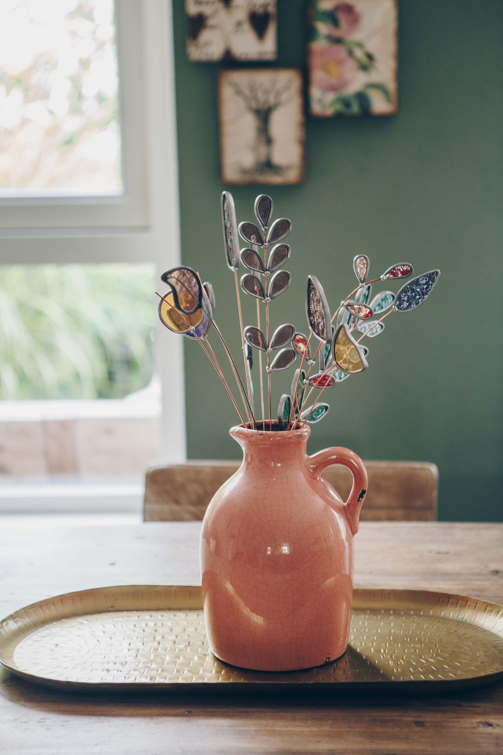 Last van een saaie woonkamer en ben je op zoek naar echt iets bijzonders voor in huis? Dan is dit unieke boeket glas in lood bloemen Wildflower bouquet ‘Florentina’ zeker wat voor jou!