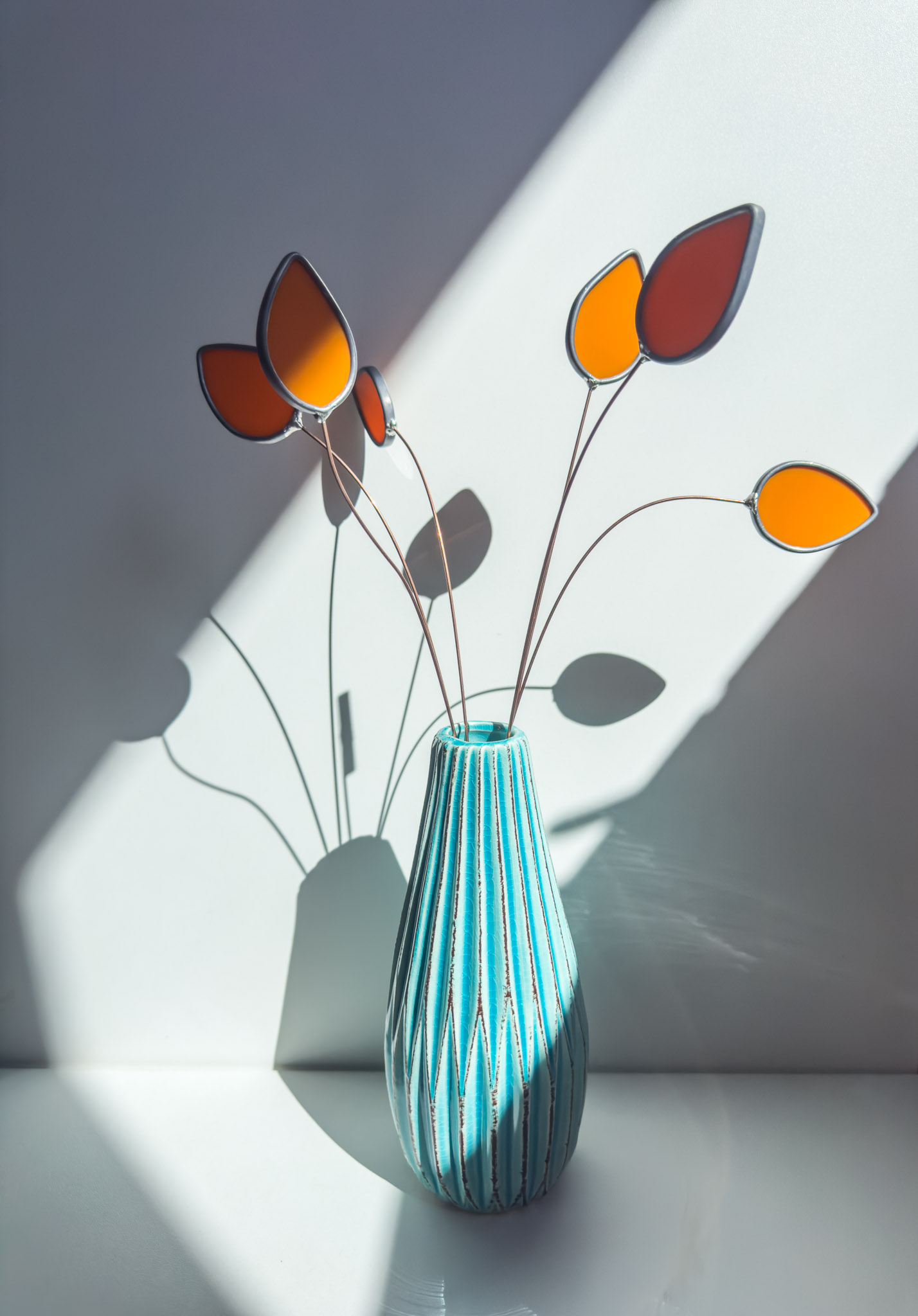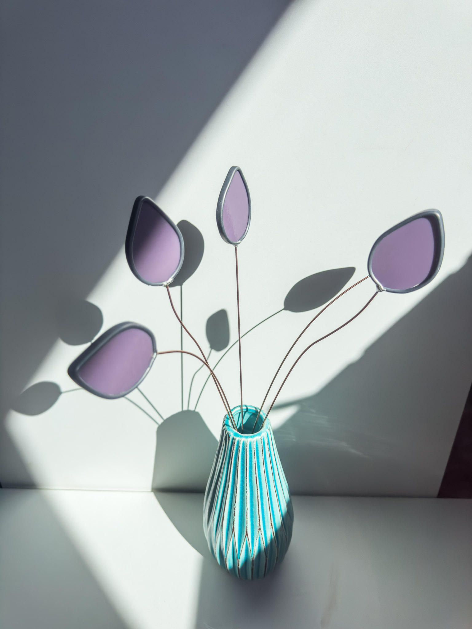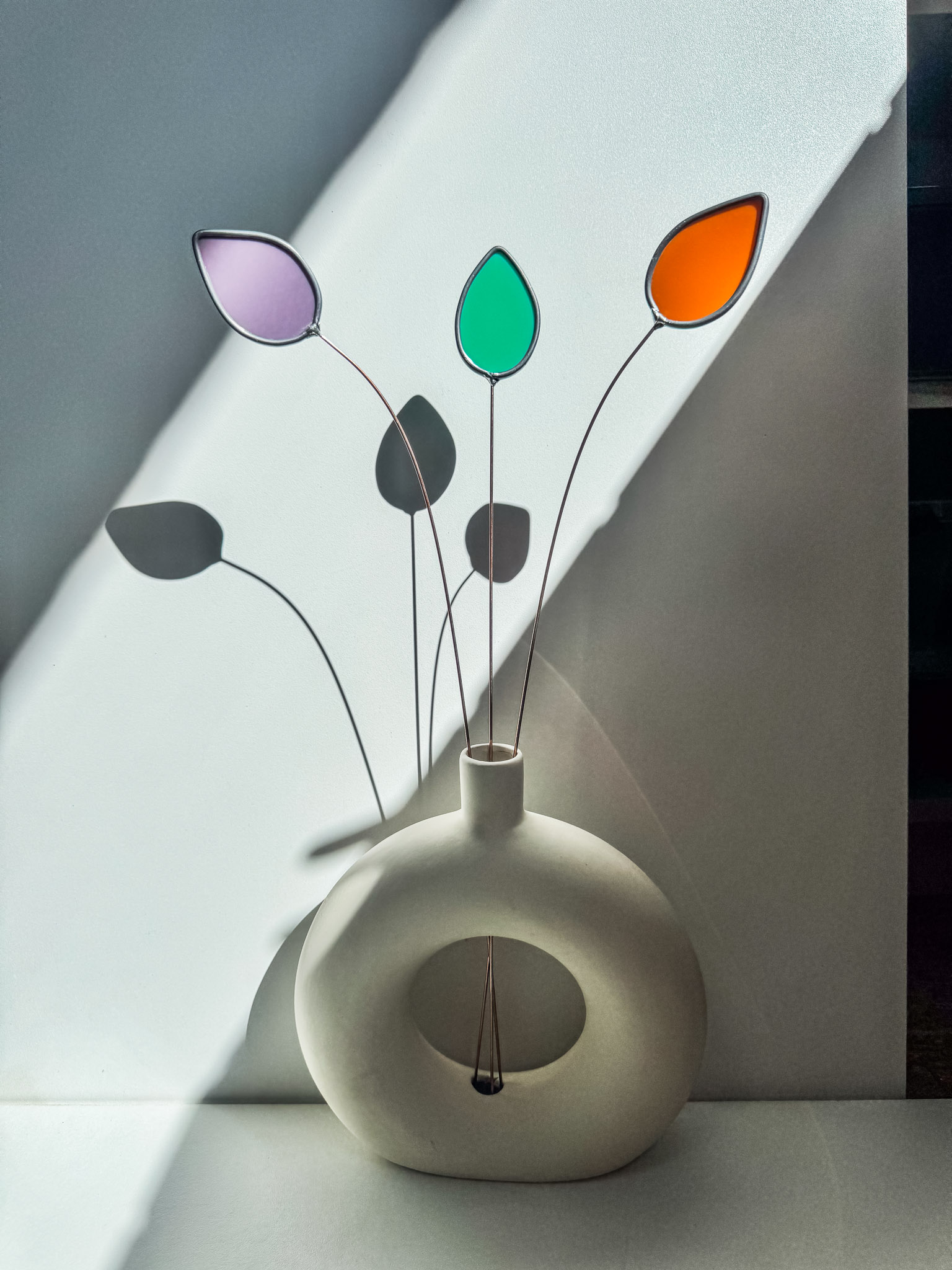 Deze vrolijke tulpen stralen je tegemoet! In 3 uitgesproken pastelkleuren vormen ze een prachtig boeketje maar ze steken ook mooi af tussen andere glas in lood bloemen uit de Wildflower collectie.